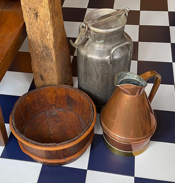 3 antique pieces that illustrate perfectly the French country life: a grain bucket,