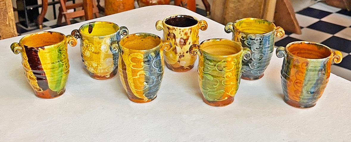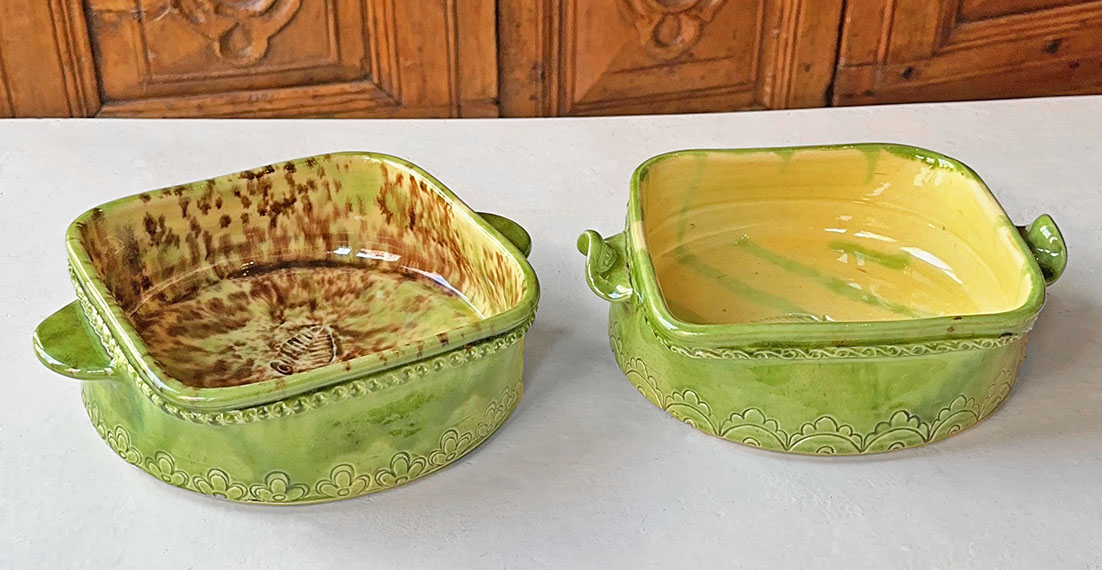 The technique called Jaspé (marbleized) is ancient and it allows for each single item to be unique. Enjoy these particularly refined examples.