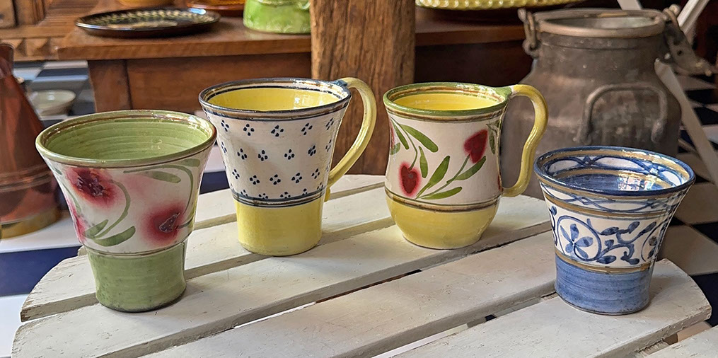 Lustered faïence used to be reserved for kings and queens. It is an ancient technique that incorporated gold and silver into glazes, showing the wealth of its owners. Now you too can have a royal egg cup, mug or bowl! You too can serve simple meals in amazing bowls and pour water from stunning pitchers worthy of a chateau table. This lustered faïence is still made with organic minerals, and its delicacy and luminescence show in every single piece. This is as utilitarian art as it gets!